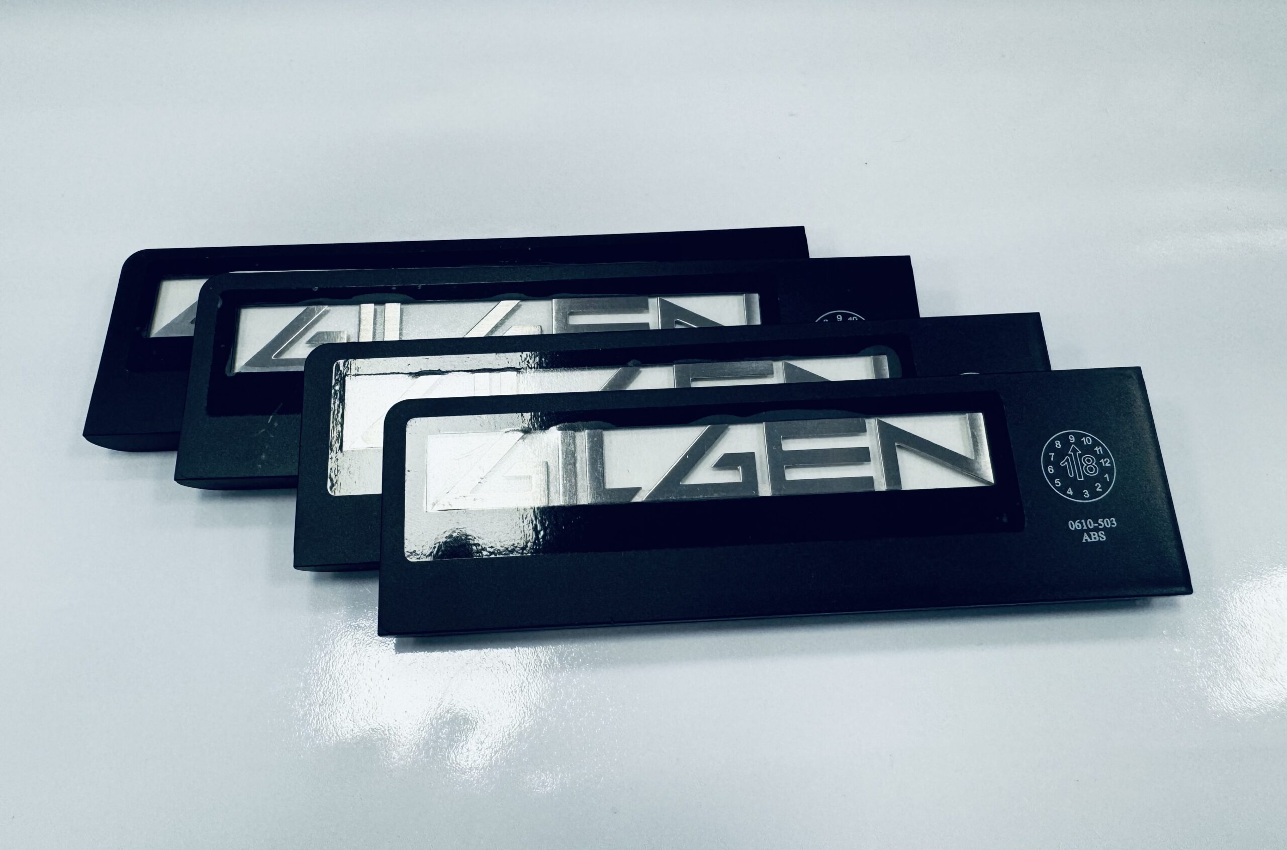 Dank einer passgenauen Montageschablone lässt sich das Logo präzise und effizient auf den vorgesehenen Bauteilen platzieren. Die Produktion erfolgt in grossen Stückzahlen – perfekt für den Serieneinsatz mit höchstem Qualitätsanspruch.